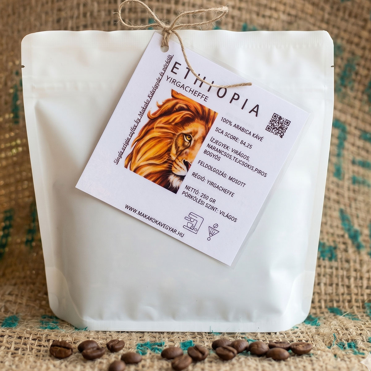 A Makákó Kávégyár elhozza neked a kávézás bölcsőjének egyik legnemesebb tételét, az Ethiopia Yirgacheffe szemes kávét. Ez a természetes (natural) feldolgozású, 100% hagyományos etióp Arabica közepesen magas savasságával és selymesen krémes testével hódít.